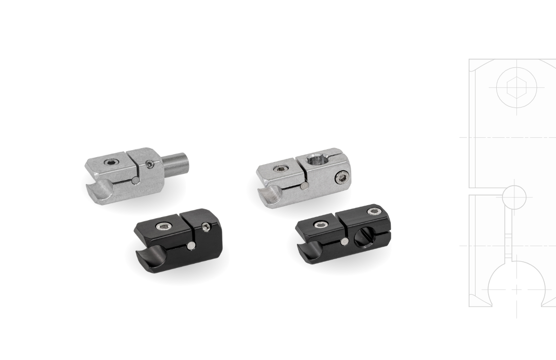 Reling-Klemmhalter TGR / KGR aus Aluminium verbinden Rohre und Stangen T-förmig, parallel oder rechtwinklig miteinander. Sie werden z. B. für Seitenführungen eingesetzt, bei denen der Klemmhalter seitlich nicht überstehen darf.