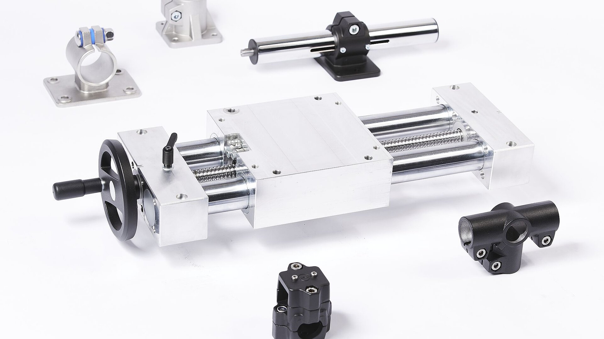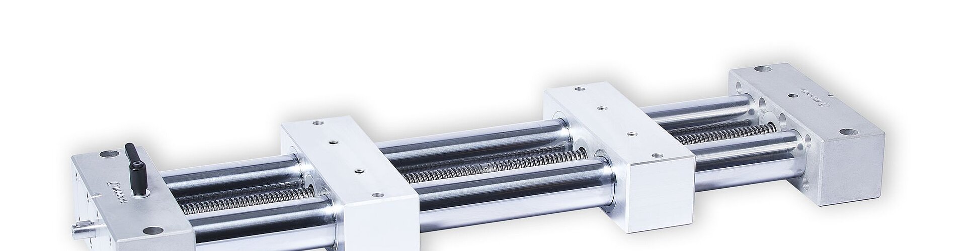 Double tube linear units also offer quick, manual adjustability. However, they do not permit rotation and hold the moved element in exactly the desired position.