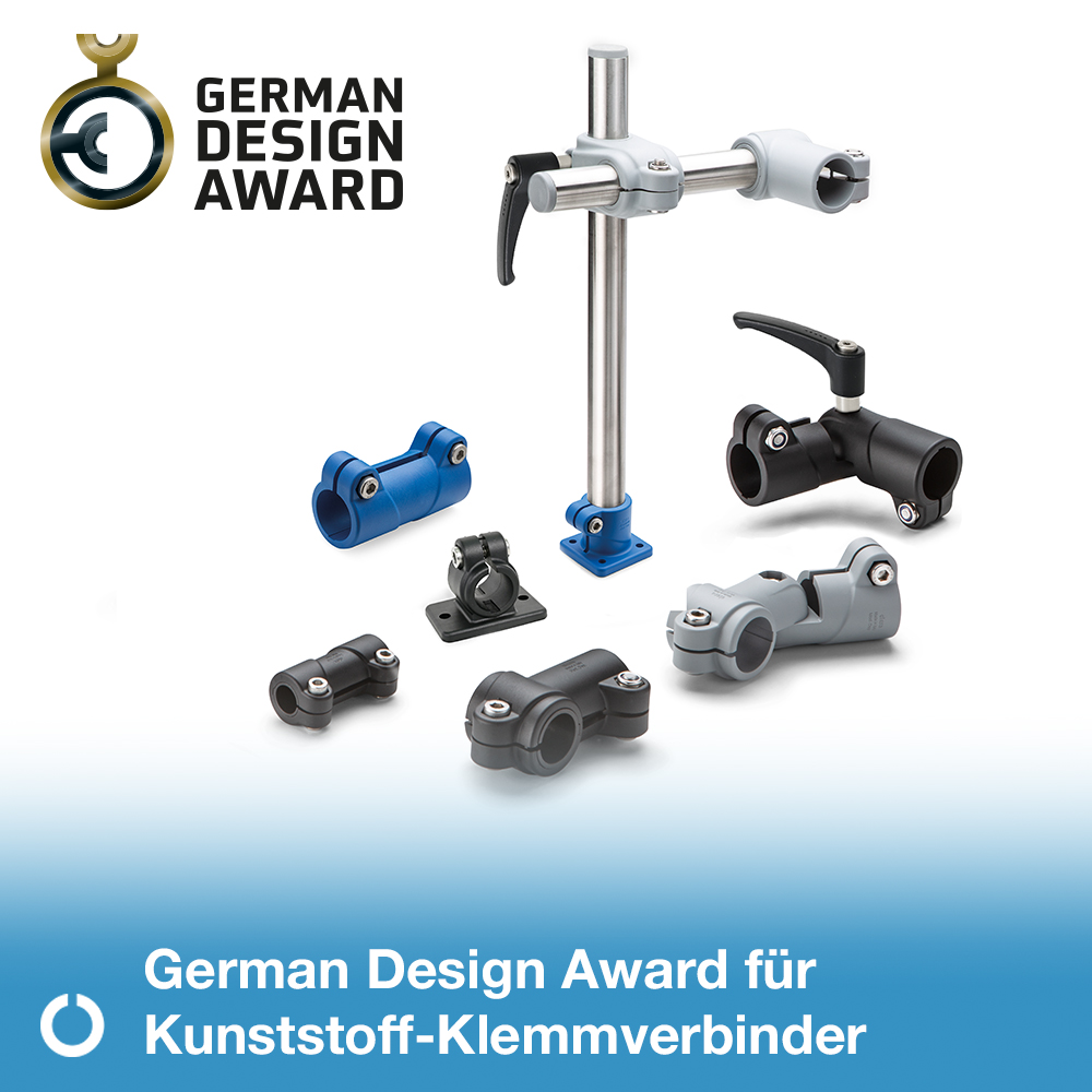 The new plastic tube clamps are not only lightweight, corrosion-resistant and variably configurable, but have now also won the German Design Award!