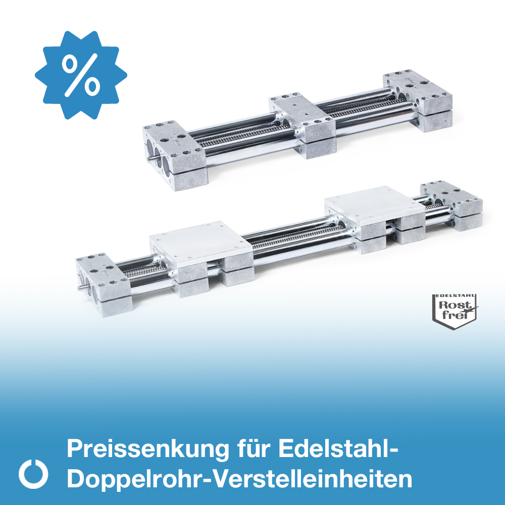 More good news! With immediate effect, you can benefit from a price reduction of approx. 14% on our tried-and-tested stainless steel double-tube linear units - while maintaining the same high quality.